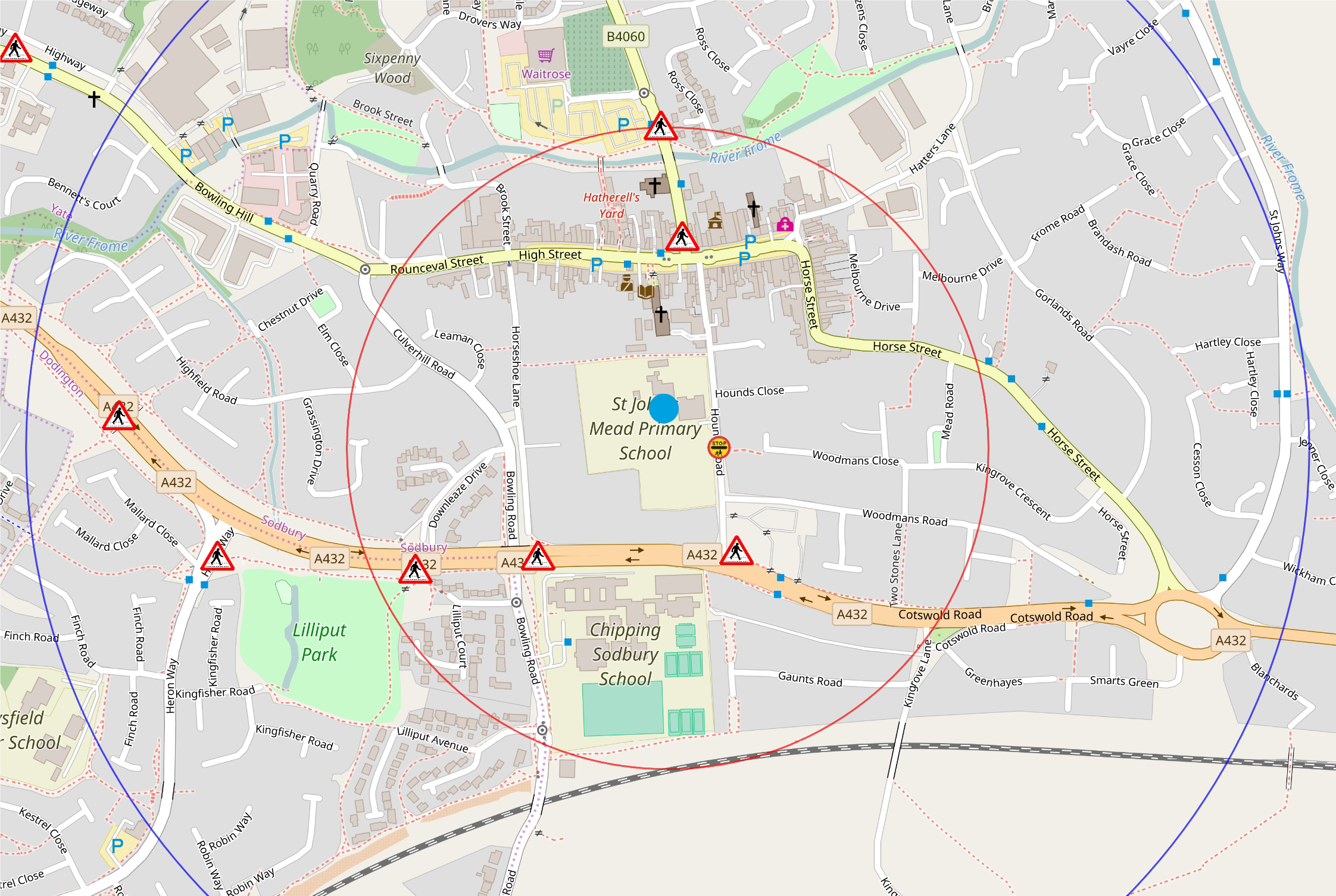 St John’s Mead school now has an Active Travel Zone Map (see below) which families can use to see where the 5 and 10 minute walking zones are, around the school.